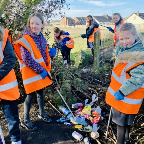 The Eco-Council met to discuss the organisation of a litter pick in our local community. The children identified areas that they regularly play in outside of school where they had observed lots of litter. The following week, armed with our litter pickers, plastic bags and our clipboards, we set off for our litter pick to the MUGA and surrounding area!