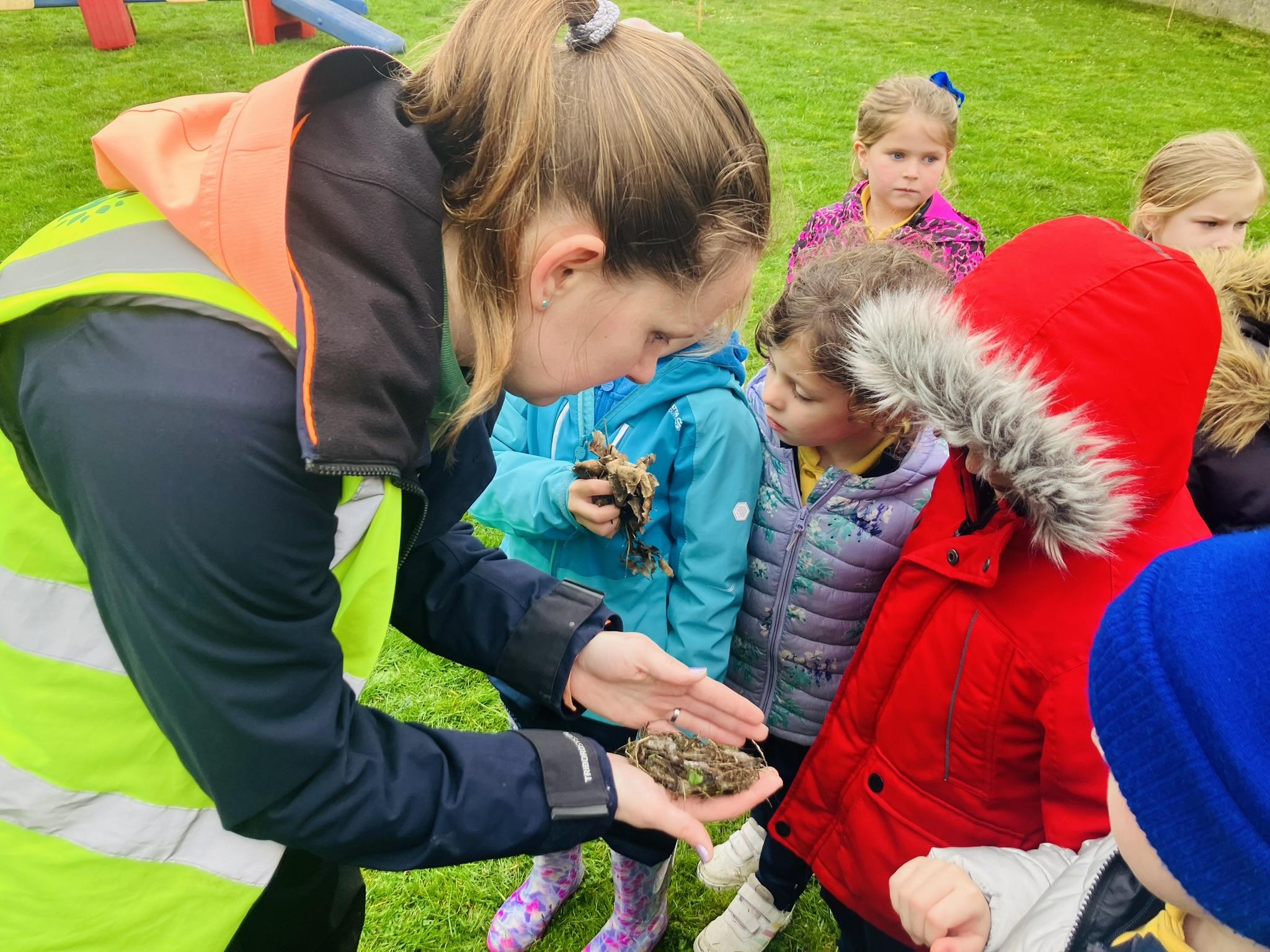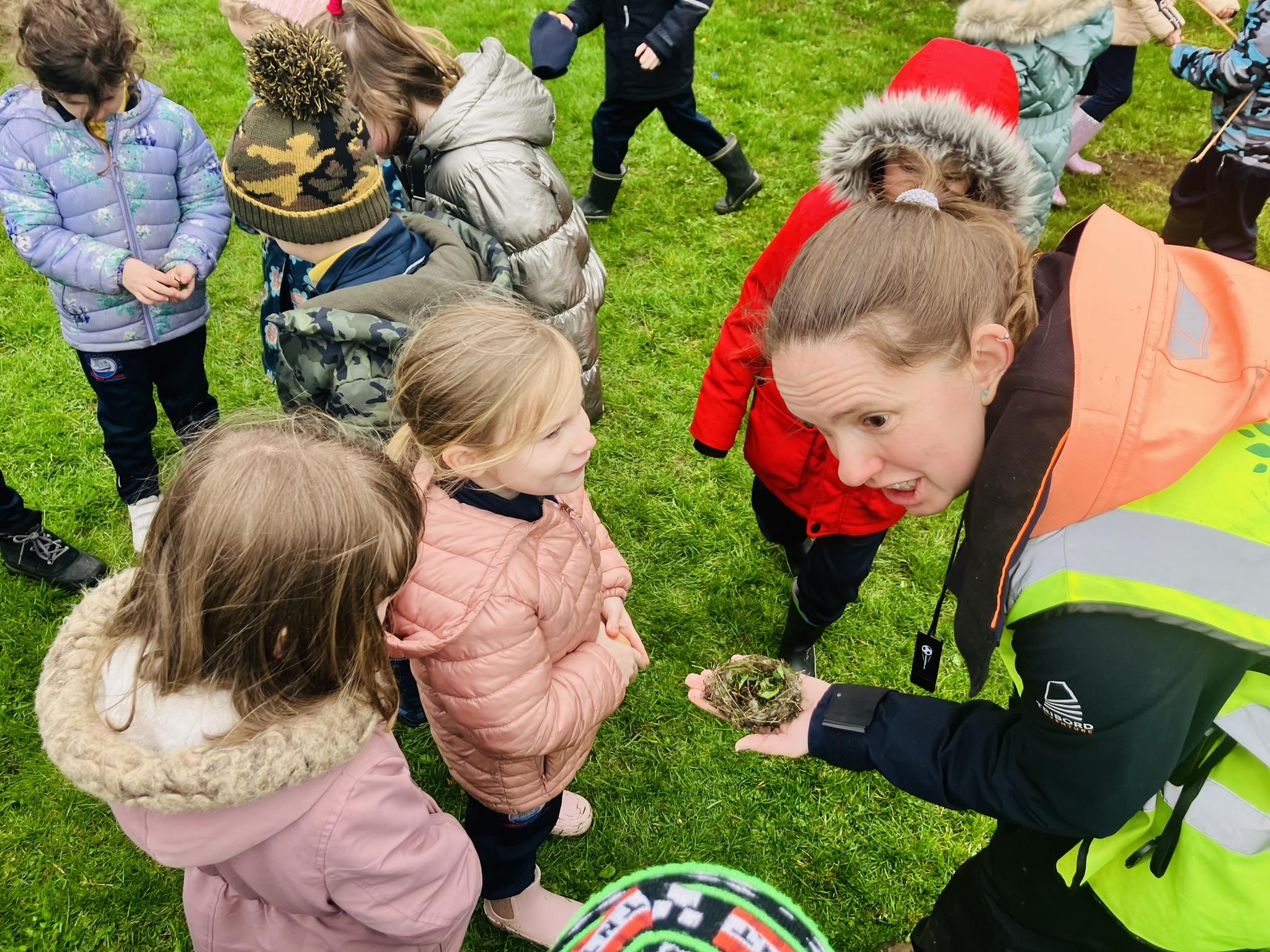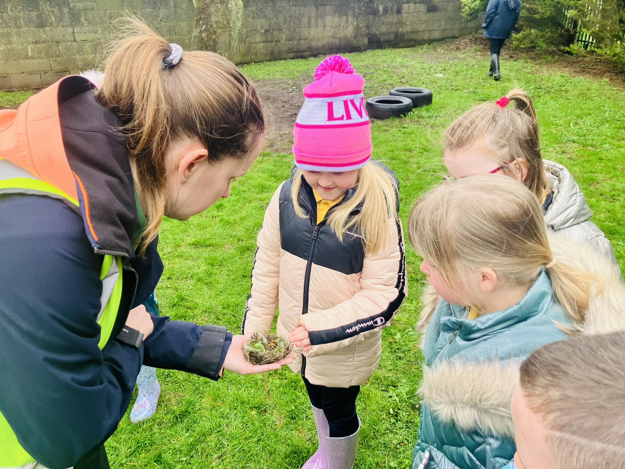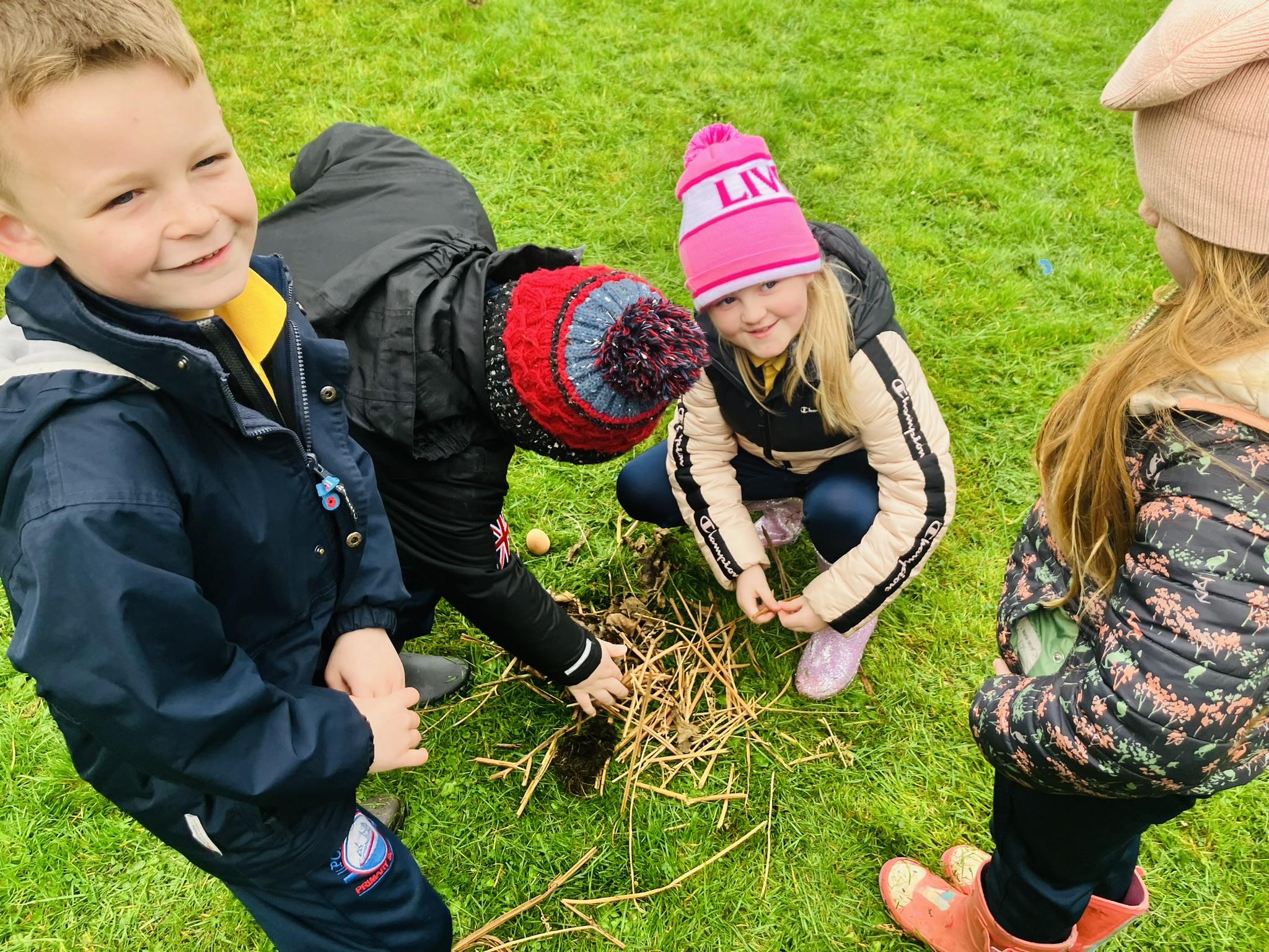 P3 enjoyed learning about bird nests. We investigated what they are made from and what is inside them. We split into groups and each group was given an egg. The groups were challenged to create a nest for their egg. We worked together in our groups to find twigs, grass and leaves to build our nests. We were lucky enough to discover a REAL nest as well! Have a look below at the fun we had in our session.