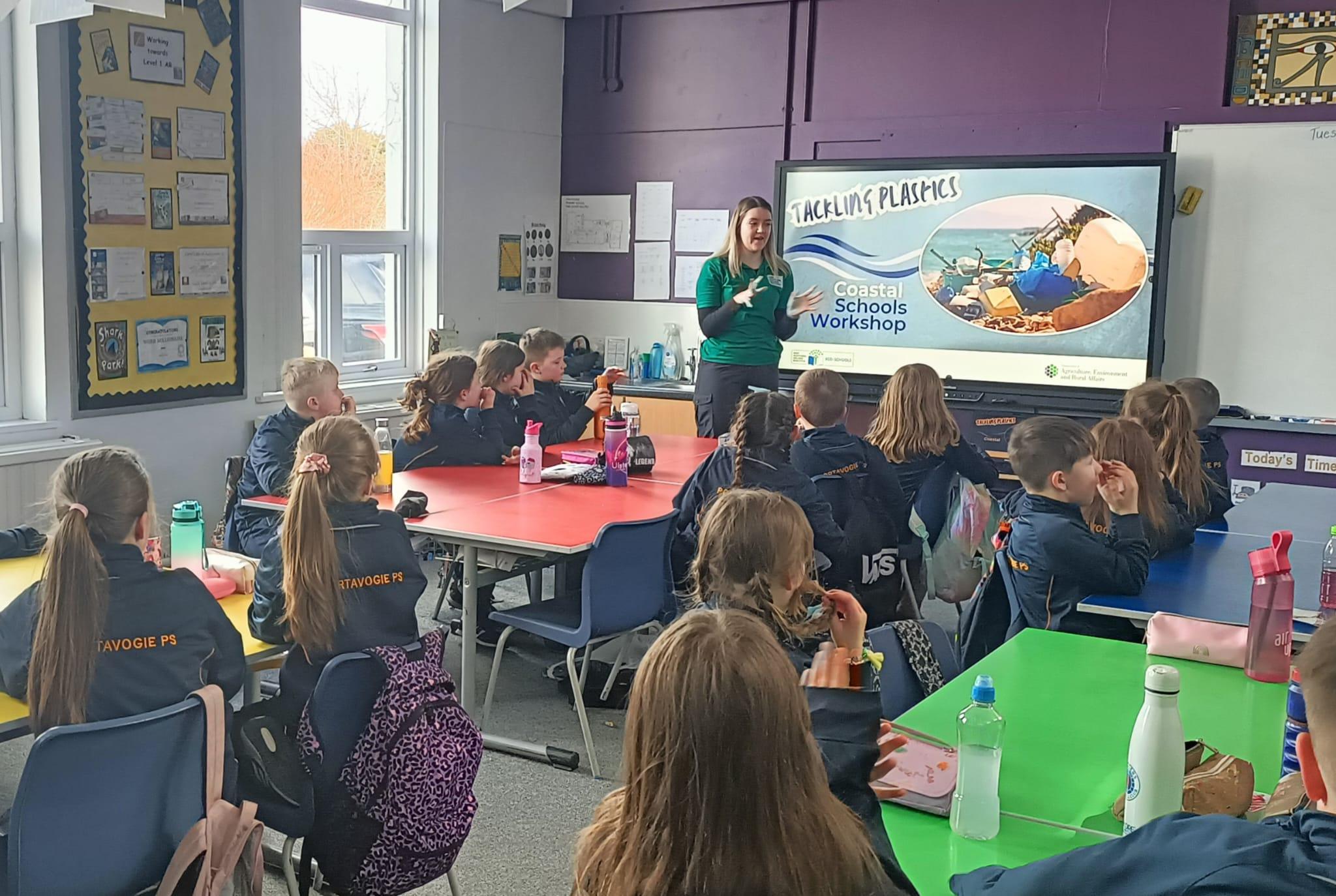 Zara, a field officer from Eco-schools, initially did an interactive 'Tackling Plastic Workshop' and worked with the children to teach them how to carry out an OSPAR Marine Litter Survey at the beach. The children then went to the beach or coastline to carry out the litter audit and submitted their results.